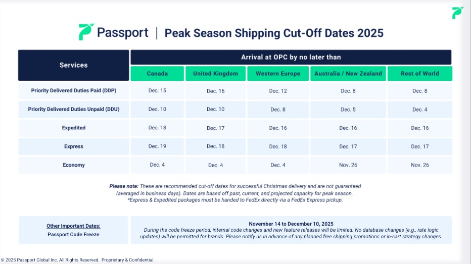 With the holidays approaching, we wanted to provide the holiday delivery cut-off dates so that you can stay informed to ensure your customers have the best possible experience this holiday season. Take a look below for the cut-off dates for our DDP and DDU service levels, as well as some best practices.