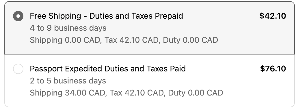 Localization is a great way to boost conversions when selling internationally. With our latest Shopify update, Passport shipments will now default to showing the explanation of costs in your shipping method description in the local currency.